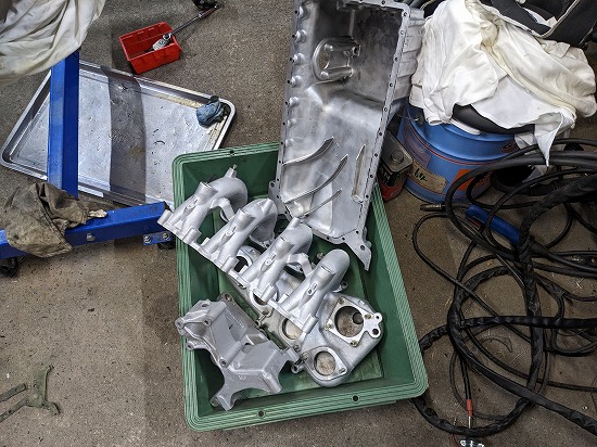 まずインマニ、サージタンク、オイルパンをEZブラストでキレイにしました。